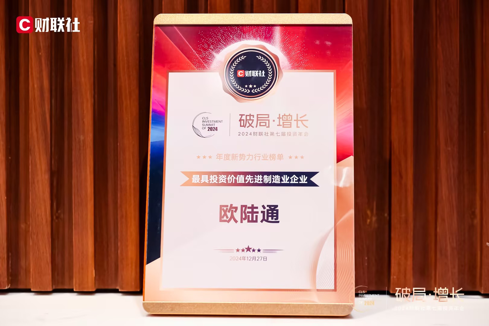 12月27日,2024財聯(lián)社第七屆投資年會在上海舉辦,邀請各界嘉賓解讀政策紅利,探討新舊動能轉(zhuǎn)換中的新機會,共同尋找經(jīng)濟發(fā)展新路徑。會上公布了“2024財聯(lián)社資本市場最具價值影響力榜單”,歐陸通獲評“最具投資價值先進制造業(yè)企業(yè)”稱號